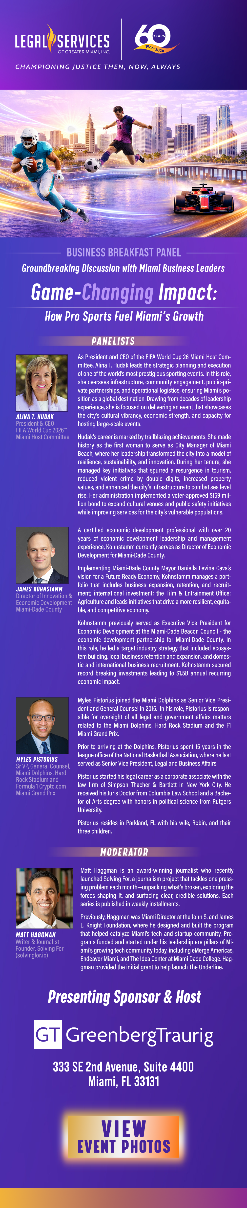 This event is one you won’t want to miss as our panelists explore and explain many of the economic opportunities available in addressing climate resilience, as well as South Florida’s recent designation as a National Tech Hub for Resilience, which unlocks tens of millions of dollars in potential funding.