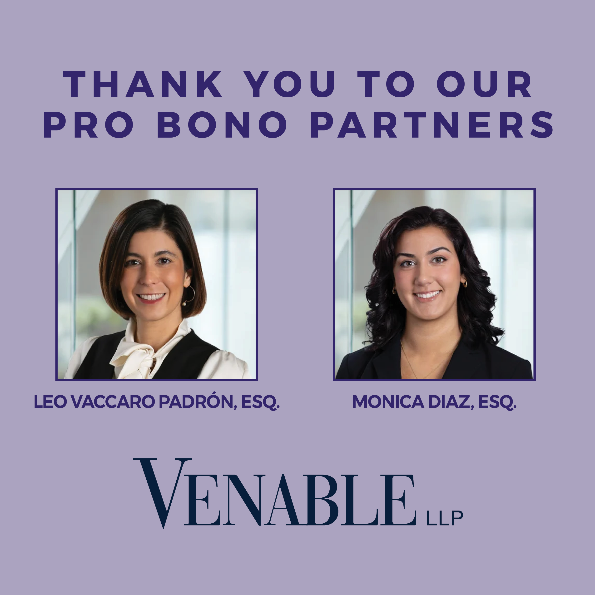 When Rosario later encountered challenges navigating the court process on her own, Venable again stepped up. Associate Monica Diaz volunteered to provide extended pro bono representation, attending mediation and ensuring Rosario understood each step. Thanks to the coordinated efforts of Leo and Monica, Rosario reached a successful settlement of $1,800, the full amount of her deposit.